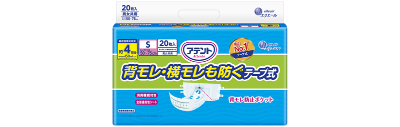 アテント 消臭効果付きテープ式 背モレ・横モレも防ぐ S|アテント