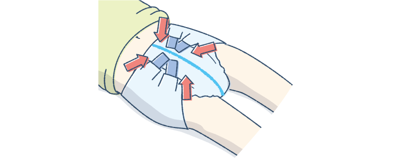 汚れたおむつを外したり、おむつの位置を合わせたりするとき、無意識のうちに引っ張ってしまうケースもあるので、くれぐれもご注意ください。