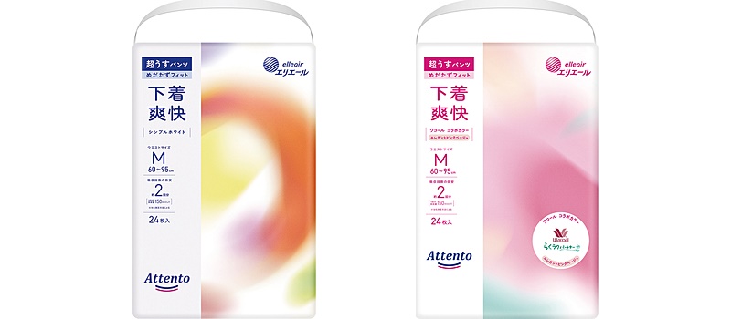 「アテント 超うすパンツ 下着爽快」は、普段の下着と同じように着用できるパンツタイプの紙おむつ。プレミアム伸び・ワザ素材とこだわりの<めだたずフィット設計>で、自然なはき心地を実現しました。ウエストすっきりカットで洋服の上からはみ出しにくく、全身のラインにも影響しません。カラーは清潔感のある「シンプルホワイト」と、見えない所もおしゃれに明るく彩る「エレガントピンクベージュ」の2種類からお選びいただけます。