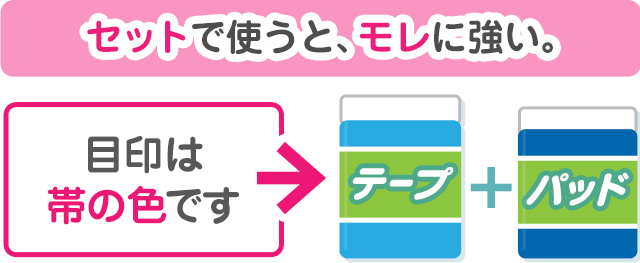 セットで使うと、モレに強い。目印は帯の色です