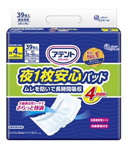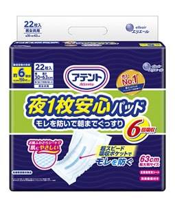 アテント 夜1枚安心パッド モレを防いで朝までぐっすり 6回吸収