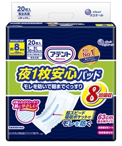 アテント 夜1枚安心パッド モレを防いで朝までぐっすり 8回吸収