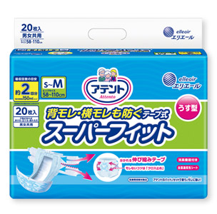 アテント 背モレ・横モレも防ぐ うす型スーパーフィットテープ式 S~M