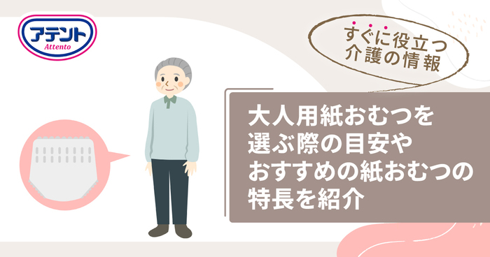 この記事では、「アテント」の大人用紙パンツや紙おむつを例に、お身体の状態に合わせた、大人用紙おむつの選び方のポイントをご紹介します。
