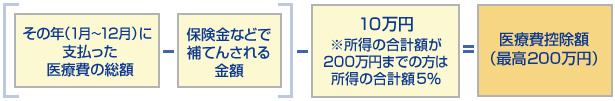 支払った医療費から保険金等で補てんされたものを差し引いた金額が、一定の金額を超えるとき、医療費控除を受けることができます。
