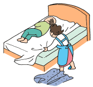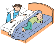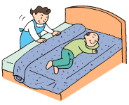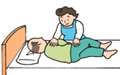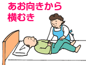 1.ベットの一方に寝返りをうってもらい、汚れたシーツを背中の下に巻き込む。