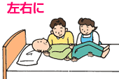 いつも同じ姿勢で寝ていると関節が固まったり、床ずれが起きやすくなります。からだのためにも、気分転換のためにも、ときどき体位を換えてあげましょう。