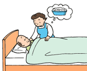 乾燥しやすく、かたくなったお年寄りの皮膚には、シーツのしわが床ずれのもとになったりします。「シーツはピシッと」が基本です。