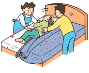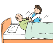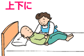 寝まきと皮膚の間がすれて床ずれになるので、動かすときはからだを持ち上げましょう。