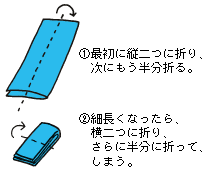 シーツのたたみ方縦折りにして縦の中心線がすぐわかるようにたたんでおけば、寝具の中央に合わせ、手早く交換することができます。