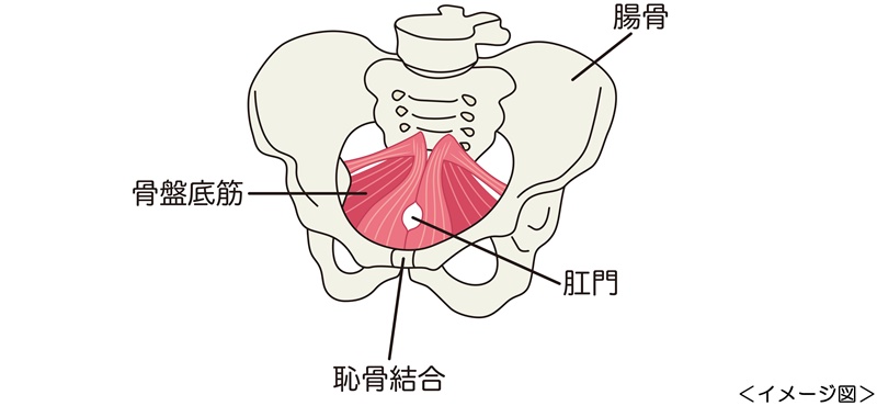 骨盤底筋は、骨盤の底部に位置する、複数の筋肉や腱でできた筋肉群です。「内臓を支える」「排泄をコントロールする」「腹圧を調整する」といった、体にとって重要な役割を果たしています。