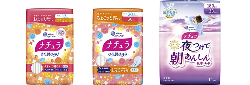 ちょっとした尿モレの不安や不快感を解消するには、下着につけるタイプの吸水ケア用品「ナチュラ」シリーズがぴったり。「ナチュラ」シリーズは、吸水量や使用シーンに合わせて、大きく3つに分けられます。