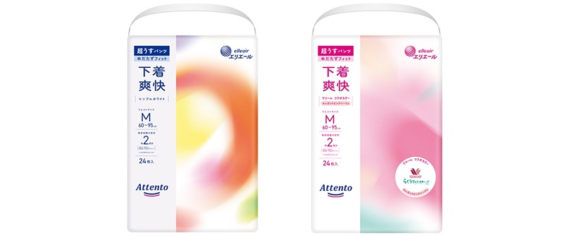 「アテント 超うすパンツ 下着爽快」は、下着のようなはき心地の紙パンツタイプの商品です。<プレミアム伸び・ワザ素材>で目立たずフィットし、<ウエストすっきりカット>で、洋服の上からはみ出しにくいのが特長。普通の下着と同じような感覚で装着できます。