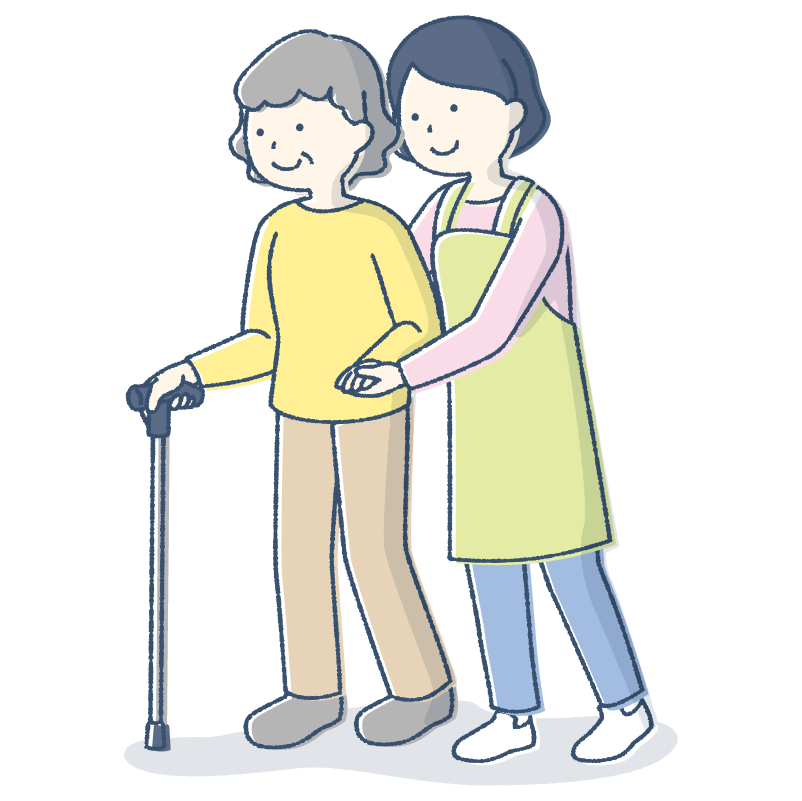 介助とは、高齢者や障がい者などの身体的に不自由な方に対して、日常生活の中で必要となる行為のサポートを行うことです。具体的には、立ち上がり・歩行などの基本動作や、食事・入浴などの日常生活動作に対する手助け、声かけなどの働きかけが介助に当たります。