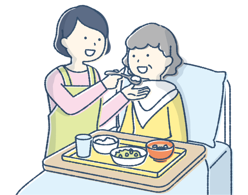食事介助とは、加齢や病気などにより咀嚼機能や嚥下機能、消化機能が低下して、うまく食事がとれない方へ行うサポートのこと。誤嚥などのトラブルを起こさないよう、食事姿勢を整える介助も含みます。食事介助の際は、誤嚥や窒息などの事故を防ぎながら、好きなものを自分の力で食べ続けられるようにサポートすることが大切です。
