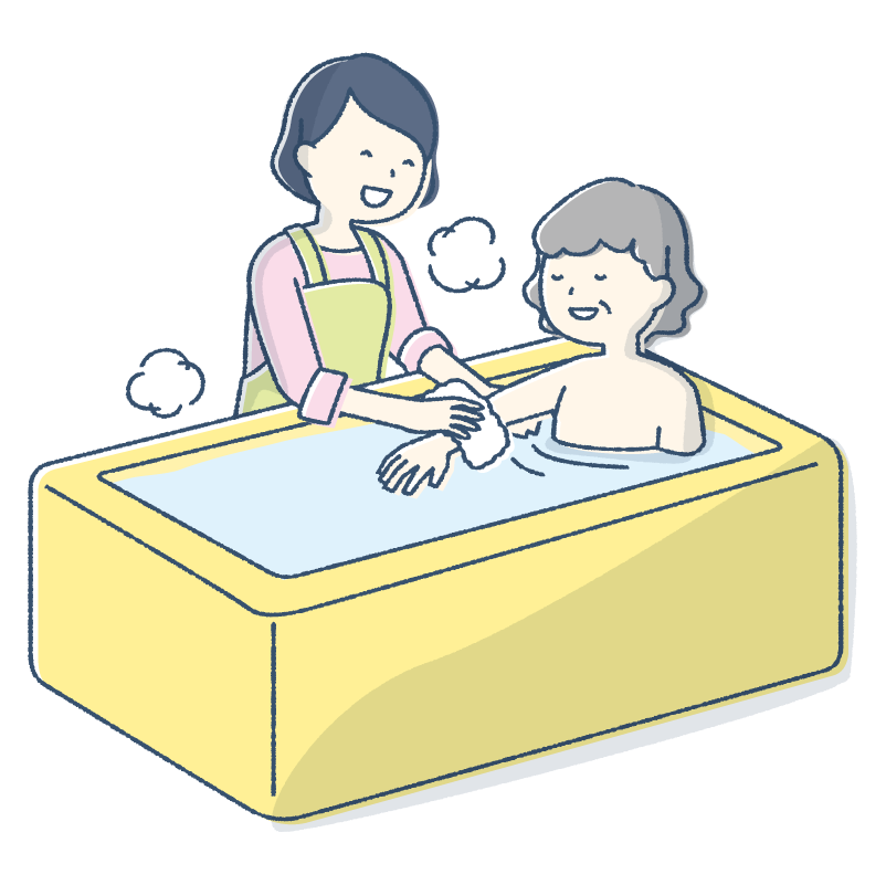 入浴介助とは、自力で入浴することが困難な方のために、介助を受ける方の身体状況や希望に応じた方法で入浴をサポートすることです。入浴は、介助を受ける方の体を清潔に保つために必要不可欠なほか、体を温めることでリラックス効果も期待できます。