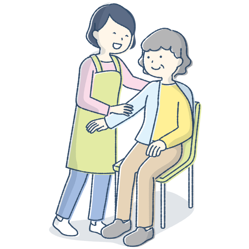 更衣介助とは、着替えをサポートする介助のことです。一人では着替えが難しい方のために、袖を通したり、襟から頭を出したりするなどの着脱をサポートします。