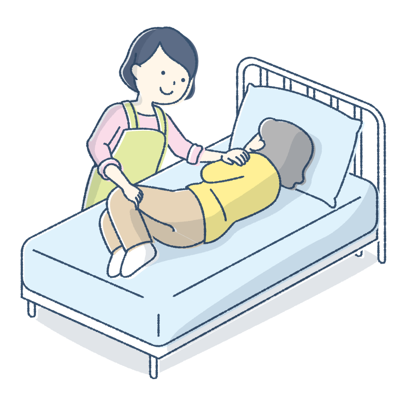 自力で寝返りをうつことができない方のために、寝返り介助も必要となります。寝返りができないと褥瘡(床ずれ)の原因にもなるため、定期的に体位変換を行ってください。