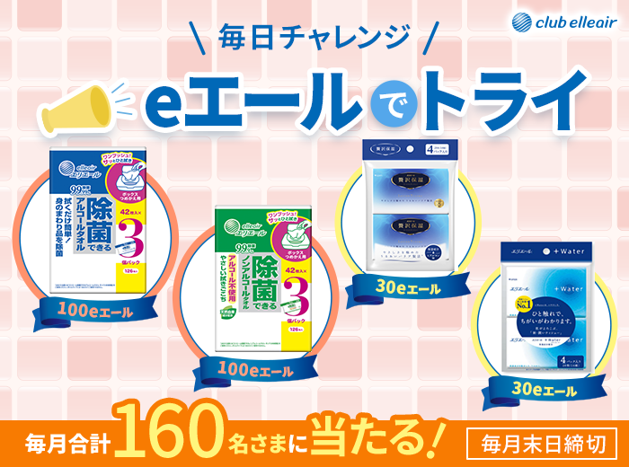 今月の賞品に関するクイズに答えると、50名さまにクラブエリエール事務局おすすめ商品をプレゼント!