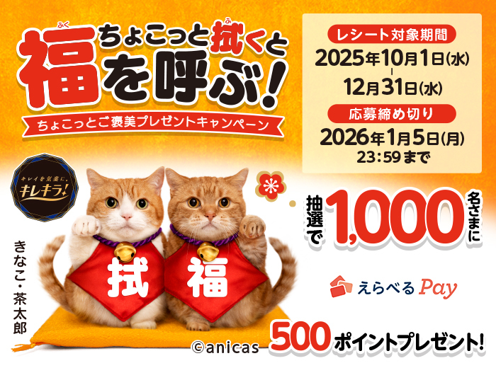 日頃の「ちょこっと拭き」で、大掃除がもっとラクになる!ちょこっと拭くと福を呼ぶ!キャンペーン