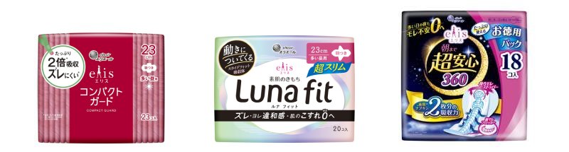 超スリムで持ち運びやすい「コンパクトガード」、ズレ・ヨレの違和感やこすれを軽減した「ルナフィット」、たっぷり吸収で安心して眠れる「朝まで超安心」など、いろいろなタイプのシリーズを用意。自分の好みに合ったナプキンを選ぶことができます。