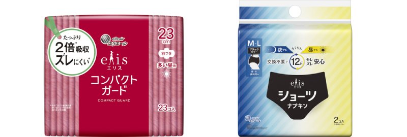 仕事やイベント、旅行などアクティブに活動したいときには、動きの妨げにならず、モレも安心なナプキンがぴったり。薄さわずか1.9mmの極薄シート採用で、足まわりの違和感も少ない「エリス コンパクトガード」シリーズや、モレ・ズレ安心の全方位がっちりホールドのショーツ型ナプキン「エリスショーツ」がおすすめです。