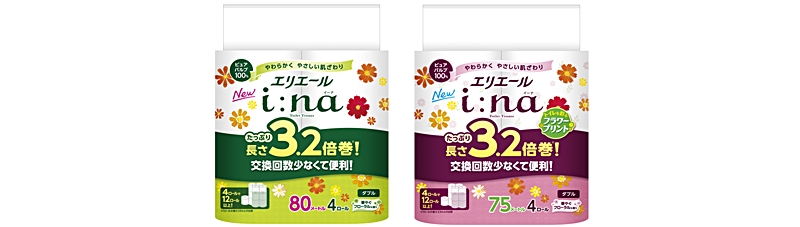 また、2021年より長巻タイプのトレンドに対応した「エリエール i:na(イーナ) シャワートイレ用2倍巻」も販売しています。