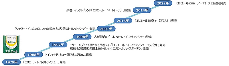 「エリエール」は、44年にわたり市場に新しい価値を投入してきたトイレットティシューのリーディングブランドです。