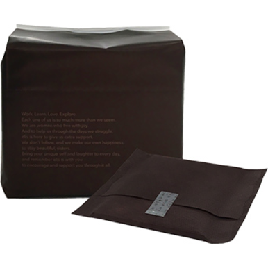 「エリス 素肌のきもち 超スリム シンプルデザイン」は、シンプルなパッケージデザインを採用した生理用品。個包装も、中身が透けにくい落ち着いた色味で、そのまま持ち歩いても目につきません。シートは「素肌のきもち 超スリム」シリーズと同様のもの。やわらかな肌当たりと、「ハネナガ・ナミガタ・スッキリ幅」にこだわった独自のカタチが特長です。