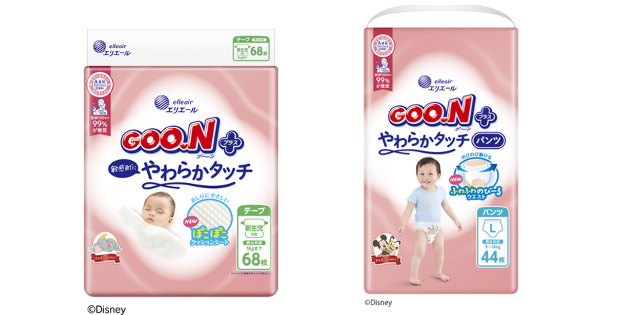 ネントレを進めるには、赤ちゃんが快適にねんねできるおむつが欠かせません。エリエールの紙おむつ「グーン」シリーズは、ママ・パパも赤ちゃんも、安心して快適に過ごせることを第一に考えて開発された商品。各サイズで異なるディズニーキャラクターが描かれているので、成長を実感しながら楽しくおむつ替えができるのも特長です。