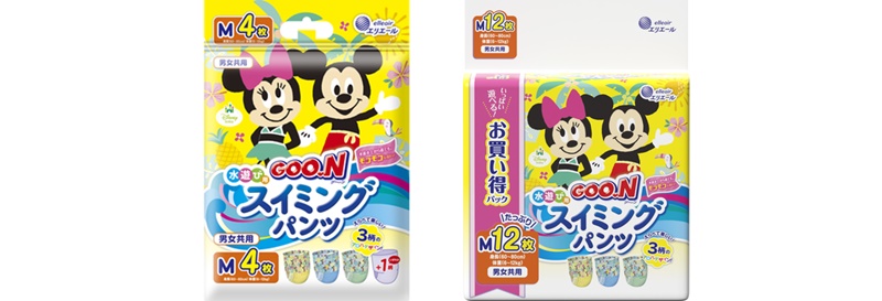 「グーン スイミングパンツ」は、超うす吸収体の採用によって水にぬれても膨らまないので、足まわりがすっきりして動きやすいのが特長。また、おむつ外側の素材が薄くてやわらかいので、上から水着を着てもモコモコせず、ゴワつきにくくなっています。