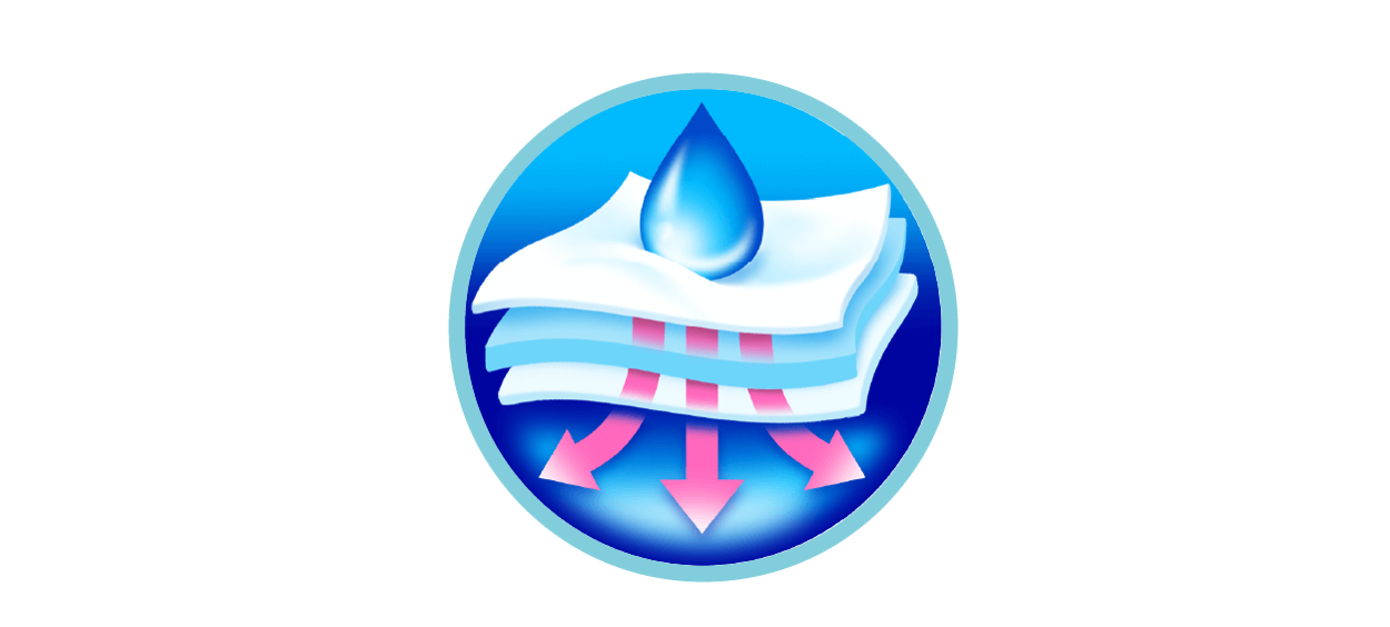 「グーン12時間ぐんぐん吸収パンツ」には、おしっこを素早く吸収して拡散する<スピード吸収シート>を採用。うつ伏せ寝の多い赤ちゃんでも、おしっこをスピード吸収・拡散してもらしません。
