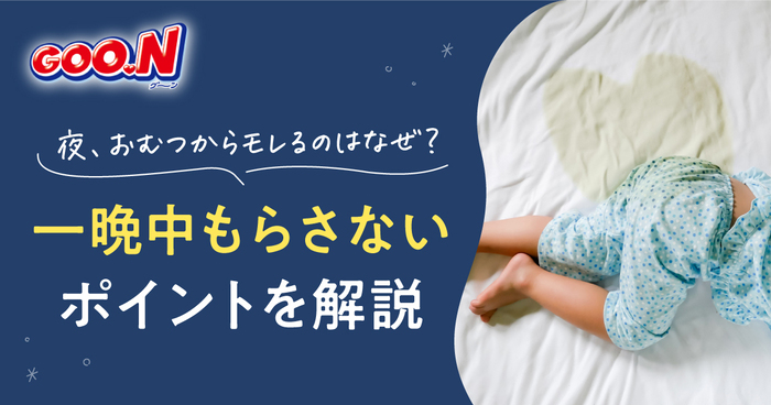 赤ちゃんが夜におむつ漏れを起こしてしまう原因とその対策について解説します。また、夜も安心して眠れる夜用おむつもご紹介します。