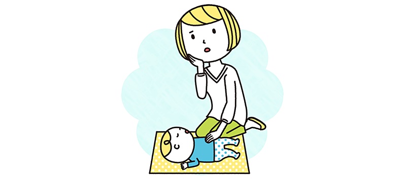 赤ちゃんによって排便周期は違うため、いつもと比べてうんちの回数が少ないかどうかを確認してください。「1日数回出ていたのに、昨日からうんちが出ていない」といった場合は、便秘の可能性があります。