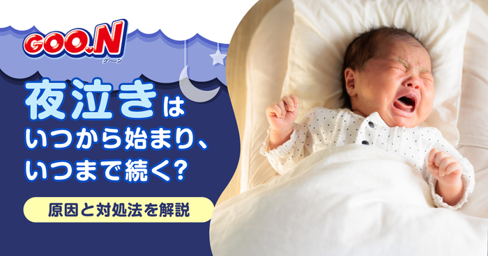 赤ちゃんの成長とともに始まる「夜泣き」。抱っこをしたり授乳をしたりしても、泣き止まないこともあります。 ママ・パパの睡眠時間が削られるなど、精神的・肉体的に負担となることも多く、夜泣きの原因や対処法を知りたいと 思っている人も多いのではないでしょうか。