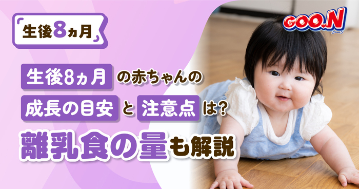生後8ヵ月になると、身長の伸びや体重の増加がゆるやかになり、お世話の頻度も安定してきます。この時期の身長・体重の目安、おむつ替えや授乳の頻度をチェックして、成長目安の参考にしましょう。