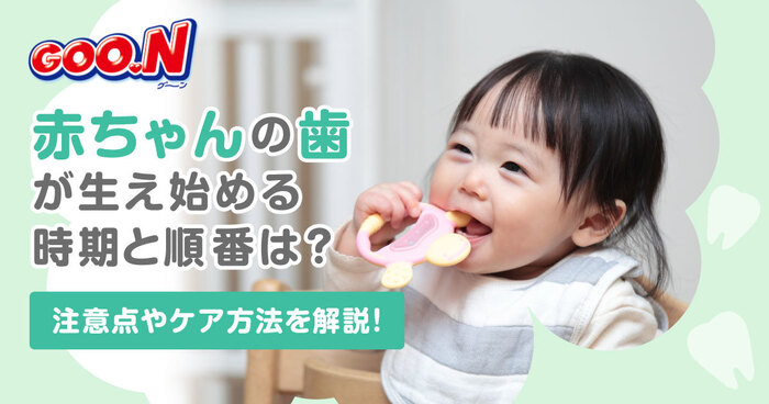 そこでこの記事では、赤ちゃんの歯が生える時期と順番について解説します。また、歯が生えない場合の注意点や、家庭でできる歯のケア方法、歯が生えることで変わる食べ物とおむつ替えの頻度などについても紹介します。