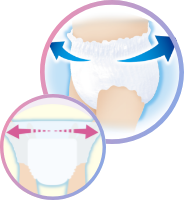 ウエスト周りが軽い力で伸びるため、動き回るお子さまのおむつ替えもスムーズに