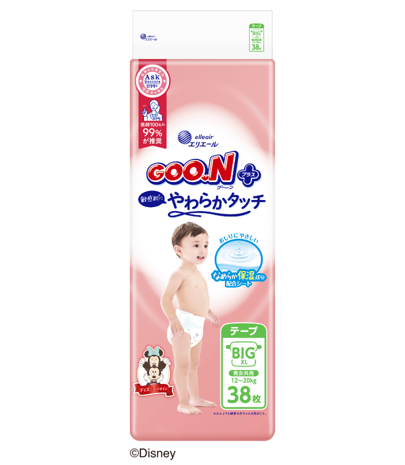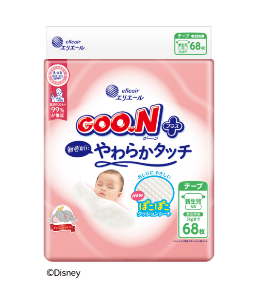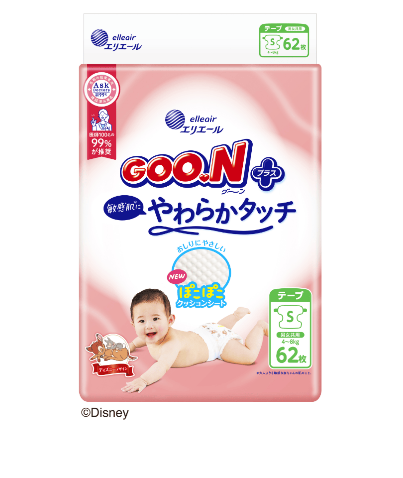 グーンプラスは医師からも肌触りの良さや肌へのやさしさが高く認められ、産婦人科医・小児科医100名のうち99%の医師が勧めたいと評価しました。