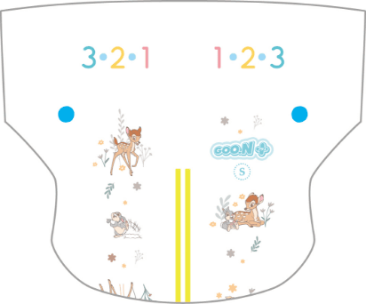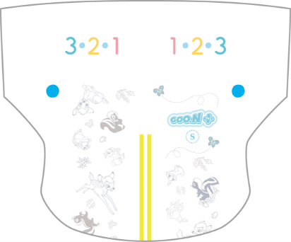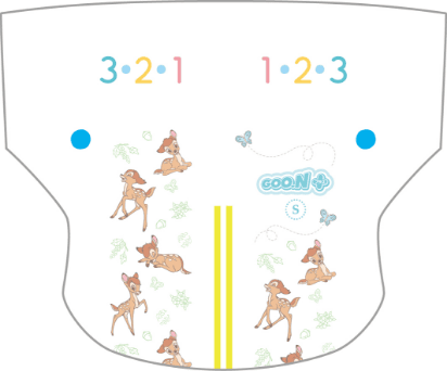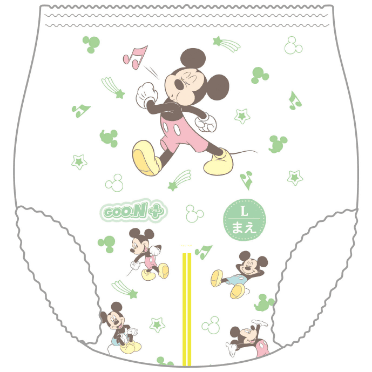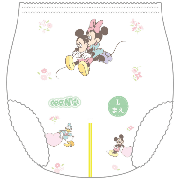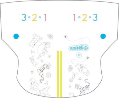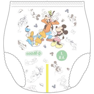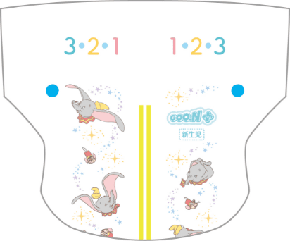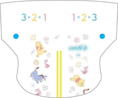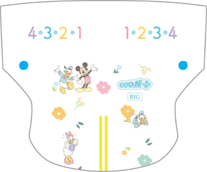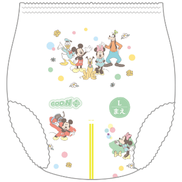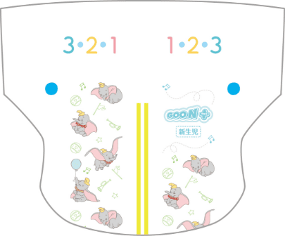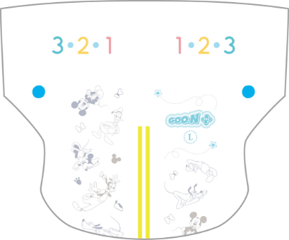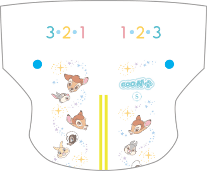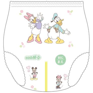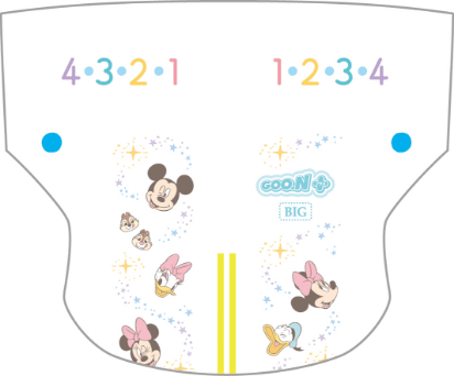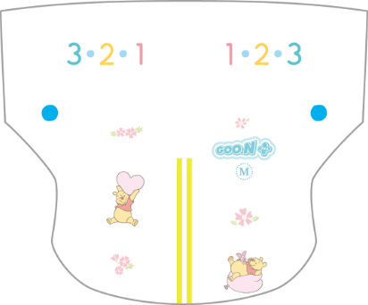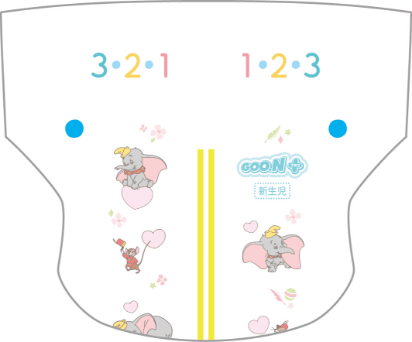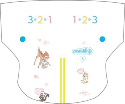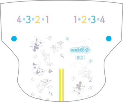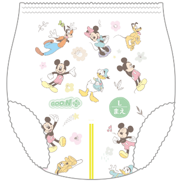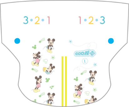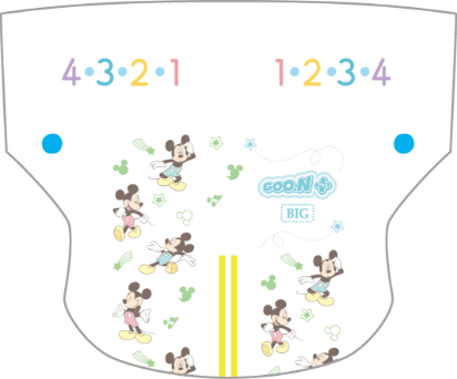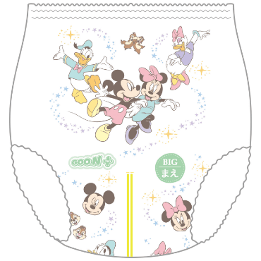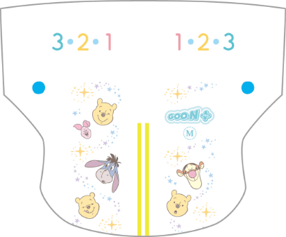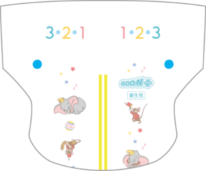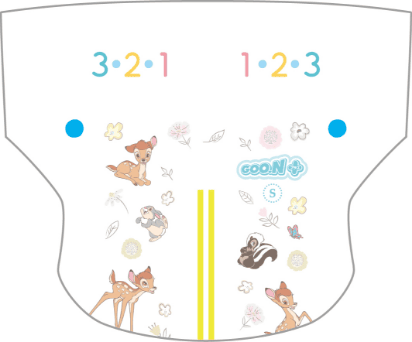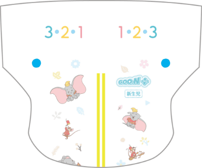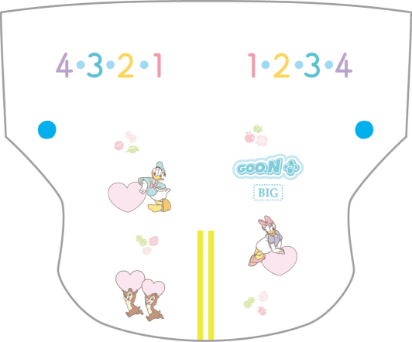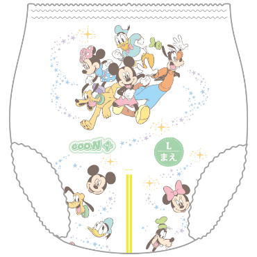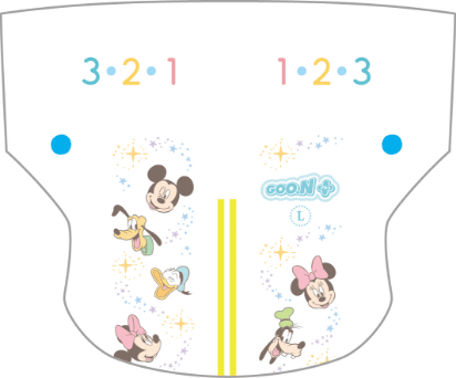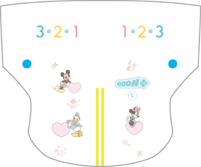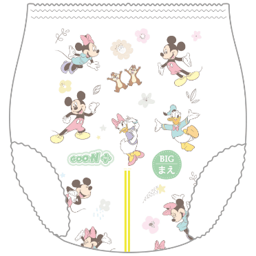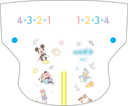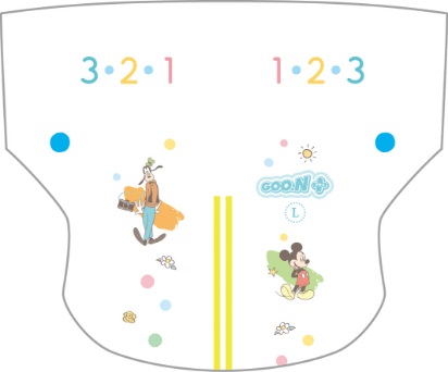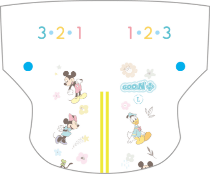 おむつのサイズが変わるごとにキャラクターも変わるので、成長を実感しながら楽しくおむつ替えができます! ※おむつイラストはイメージです。