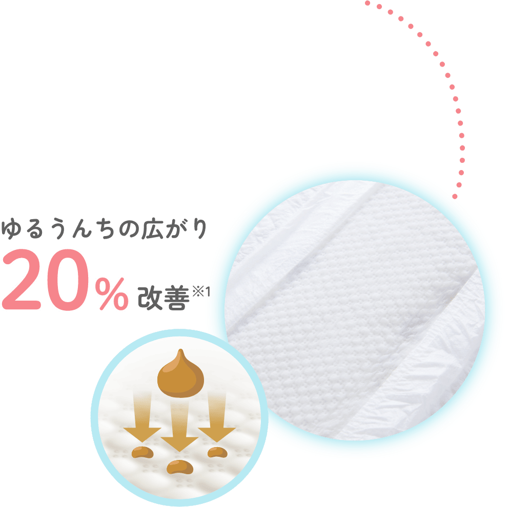ぽこぽことしたやわらかい肌触りで肌にふれる部分を最小限※2に。凸凹でゆるうんちも広げずキャッチするから肌につきにくい。