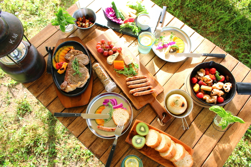 キャンプ場で調理する際は、肉類や魚介類と、野菜類・果物類の調理器具(包丁、トング、箸、まな板など)を必ず分けましょう。さらに、肉類や魚介類は「焼く用の箸」と「食べる用の箸」を使い分けます。