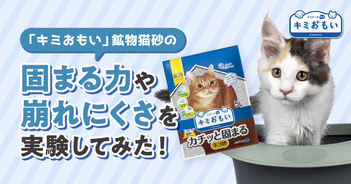 今回は、鉱物猫砂の「キミおもい カチッと固まるネコ砂」について、開発者に商品の特長やこだわりのポイントを伺いました。また、「キミおもい カチッと固まるネコ砂」がどれだけネコちゃんのおしっこを固めてくれるのかを実験!固まる力や崩れにくさについてレポートします。