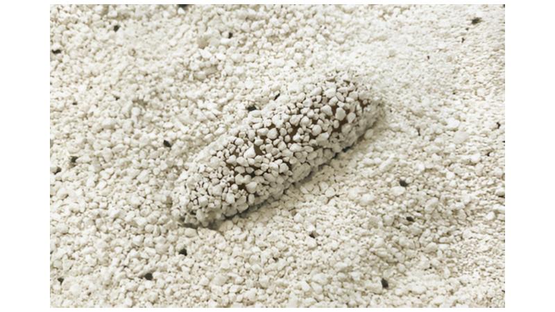 守谷さん:商品開発にあたり、ネコちゃんのオーナーさんにお話を伺ったところ、トイレ掃除のときに、固まった猫砂が割れたり崩れたりすることでお悩みの方が多くいらっしゃいました。そこで、固まる力が強い鉱物を主原料に選び、さらに砂の粒を細かくすることで固まる性能を高めました。また、粒が細かいので、ネコちゃんが排泄時に砂をかきやすく使いやすいのも特長です。