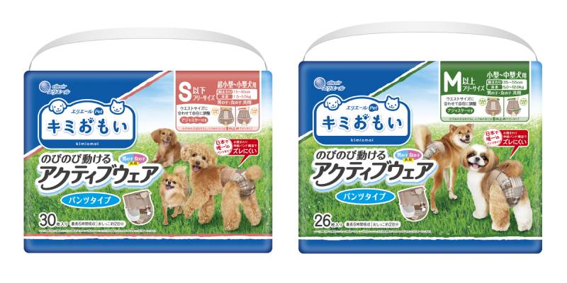 大王製紙の「キミおもい」のワンちゃん用紙おむつは、使用シーンに合わせて選べる2タイプ。いずれも男の子・女の子共用のユニセックスデザインです。