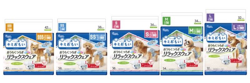 「キミおもい おうちくつろぎ リラックスウェア」は、テープタイプのおむつです。就寝時やお留守番、ソファーの上でリラックスするときなどのおうちシーンにぴったり。幅広テープでゆったり装着でき、フィット性がありながらも、ワンちゃんの体を締め付けません。スピード吸収と通気性の高いシートで、ムレにくく快適です。