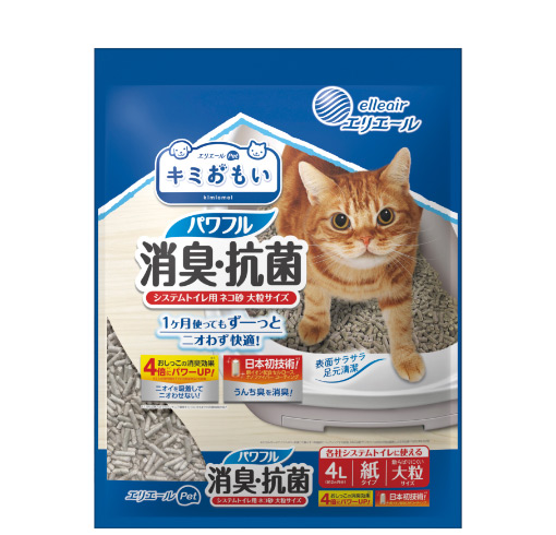 ■パワフル消臭・抗菌 システムトイレ用ネコ砂 散らばりにくい大粒サイズ 4L・4.4L/砂がかきやすい小粒サイズ 4L・4.4L:2,100円(税込)