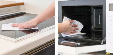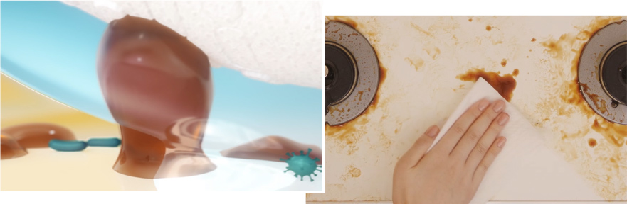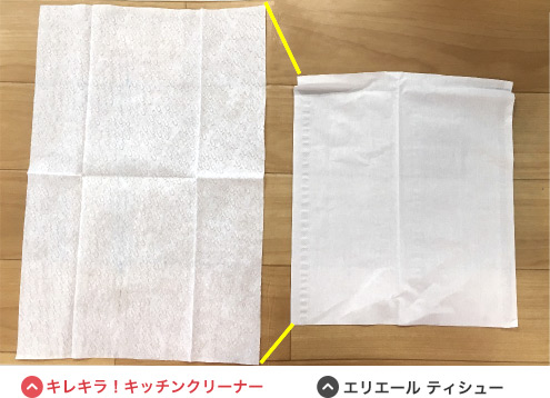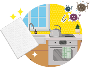 シートを1枚取り出し、調理後の「コンロまわり・壁」「調理台」「シンクまわり」「電子レンジや冷蔵庫の内側」「食卓」など、いつも通りにキッチン周りの拭き掃除。