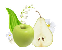 - アップル、ペア、ピーチ、ライムなどのグリーンナチュラルアクセントのフレッシュなシトラスの香り