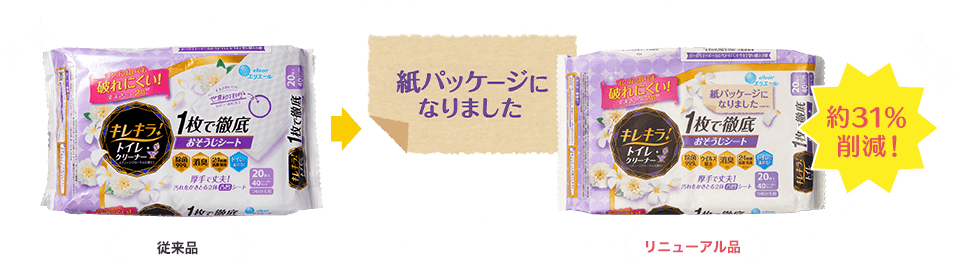 ※当社調べ、「キレキラ!トイレクリーナー 1枚で徹底おそうじシート」従来品(2020年9月以前に発売された商品)との比較。